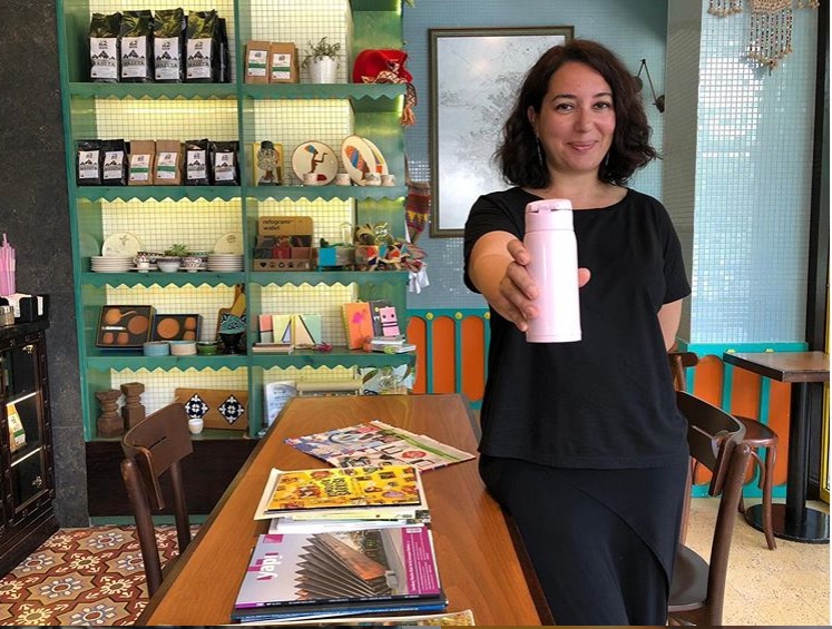 An Individual entrepreneur encourages to reduce waste production in daily life, specifically single-use plastics. She has led this social movement #kahvemtermosta that invites people to use their own mugs in coffee shops. Today, more than 80 coffee shops across Turkey provide incentives to their customers who want to take their coffee with their own mugs.
