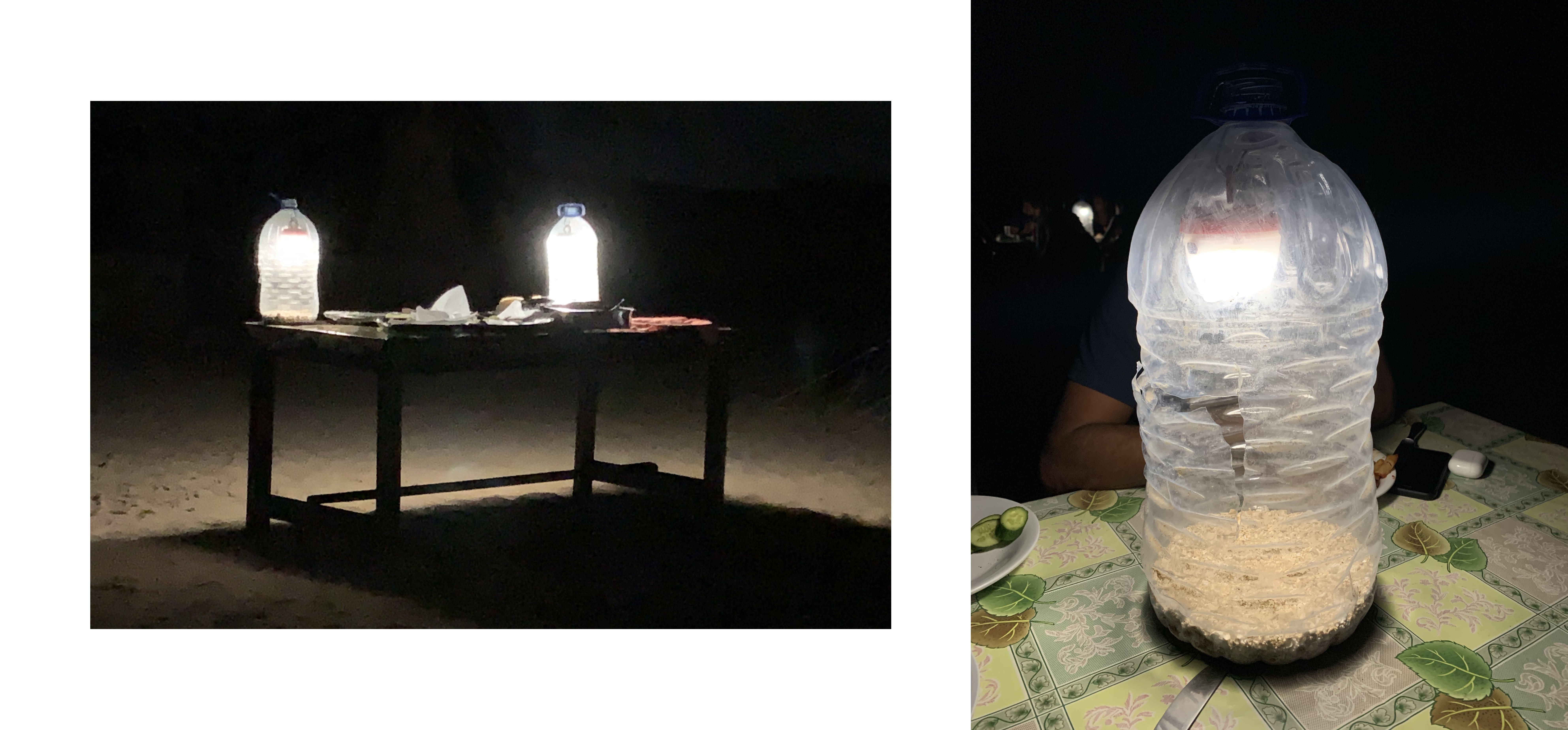 The camp located in Ras Mohamed Nature Reserve in Egypt used a DIY lighting solution that helped guests staying at the camp to have some light at night while dinner is served.
