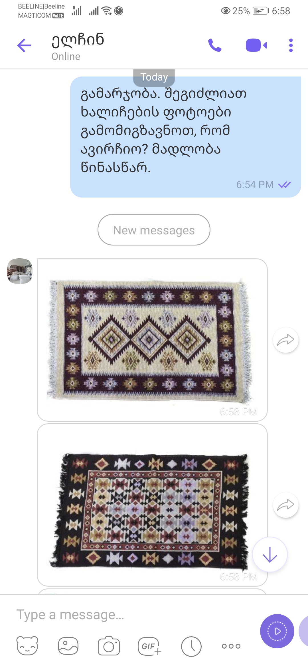 A vendor of the self-emerged but currently formalized bazaar is using Viber messenger to showcase the products that cannot be presented immediately in the 'showroom'.