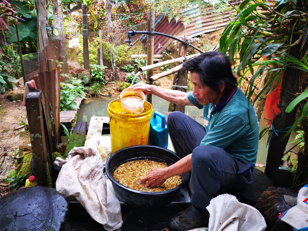 Local coffee (Arabica) planted at the foot of Mt. Kinabalu (1300m asl), Sabah. Traditionally processed and roasted using firewoods. The processing method has been practiced for generations (over 50 years) at a small village called Kiau Nuluh at Kota Belud, Sabah. It is one of the very few local Arabica Coffee available in Malaysia. An ecotourism business was started which took tourists through the traditional coffee farming process where one could see and taste first-hand the farm-to-cup experience. However, during the Movement Control Order (MCO), the entire village found themselves out of a job as around 90% of them had been depending on the tourism sector as their source of income. Fortunately, with the help of the digital platform, they managed to deliver the beans across Malaysia and even received orders from overseas.