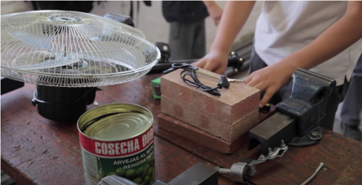 5 teenagers from Casavalle (a very low-income neighborhood in Montevideo) decided to create something that could help everyone. They created a heating system using wind energy with materials that are easily accessible. Fan propellers, washing machine pumps and fire bricks. The energy comes from the wind that makes the fan blades spin rapidly; behind the paddles the washing machine pump is connected. This washing machine pump can be removed from any that is in disuse. A cable is connected from the pump that transmits the energy to a shielded resistance (it is found inside the electric jugs). Finally, the resistance is embedded within a firebrick.