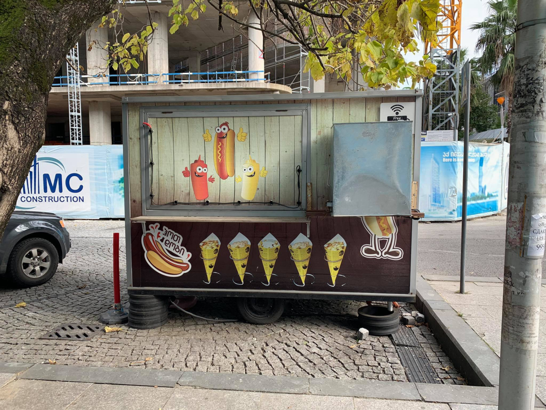 pillars from old tires for the food store made of trailer
