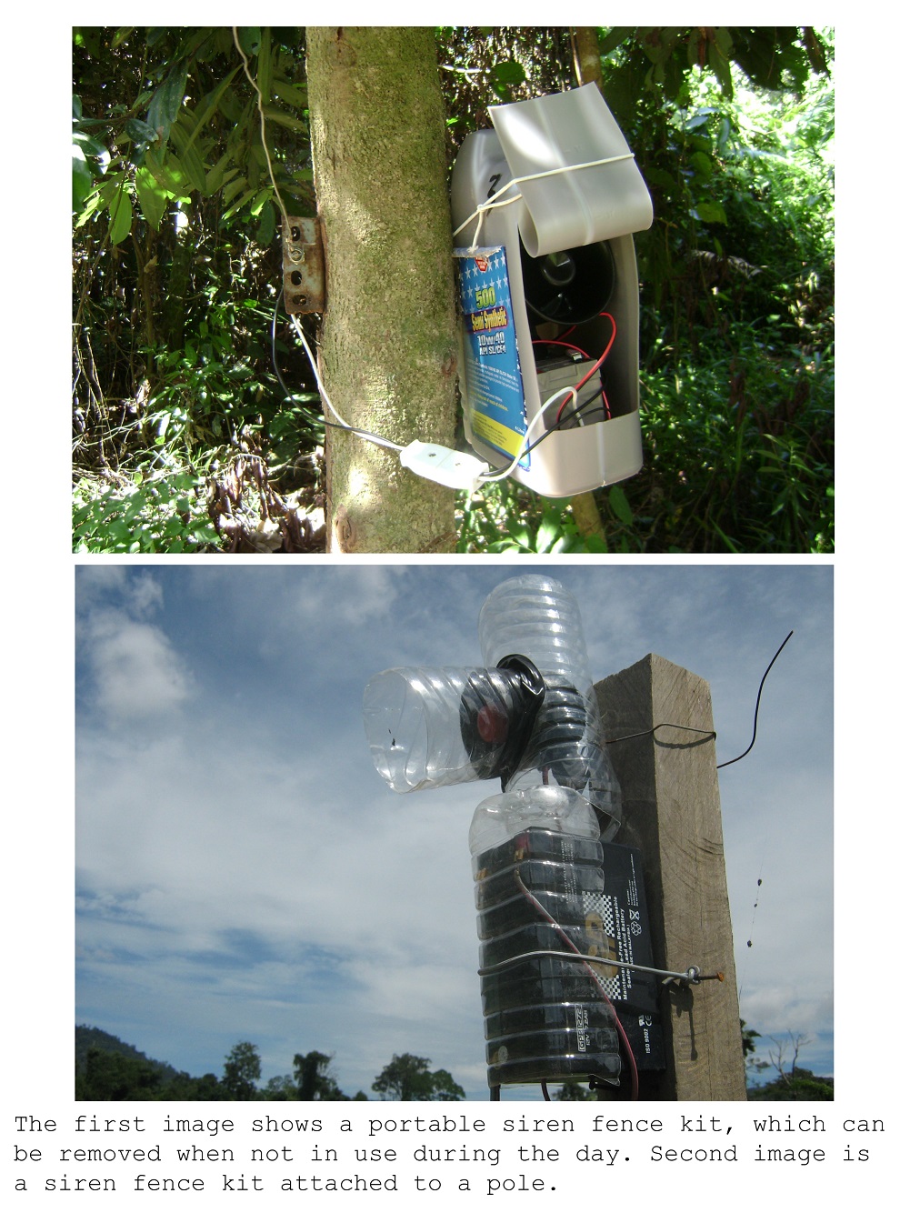 Wildlife Conservation and Science (WCS) Malaysia works to protect the habitats of orangutans, tigers, elephants, sharks and rays in Malaysia. Through their project, “Empowering [REDACTED] in Johor and Iban Communities in Sarawak towards Environmental Stewardship”, it empowers local communities via conservation education towards the survival of endangered animal species. The project focuses on the site's importance for remnant orangutan populations, elephants and tigers. Solutions: 1. Connects communities with agencies for patrolling efforts by implementing an effective first line surveillance on the ground. -A Siren fence system was introduced to solve Human-Elephant conflict. An early warning system will alarm the farmers when elephants try to enter their crop fields, reducing crop-raiding problems. The siren fence consists of a thin, horizontal steel wire supported by wooden poles along the perimeter of the crop field. The alarm kit consists of a switch, car siren and 12 volt dry-lead acid battery attached to the wire which will trigger the siren when elephants come in touch with it. Local communities are also able to operate GPS devices, satellite phones and digital cameras on their own though patrolling training. Allowances are given to participating patrols.