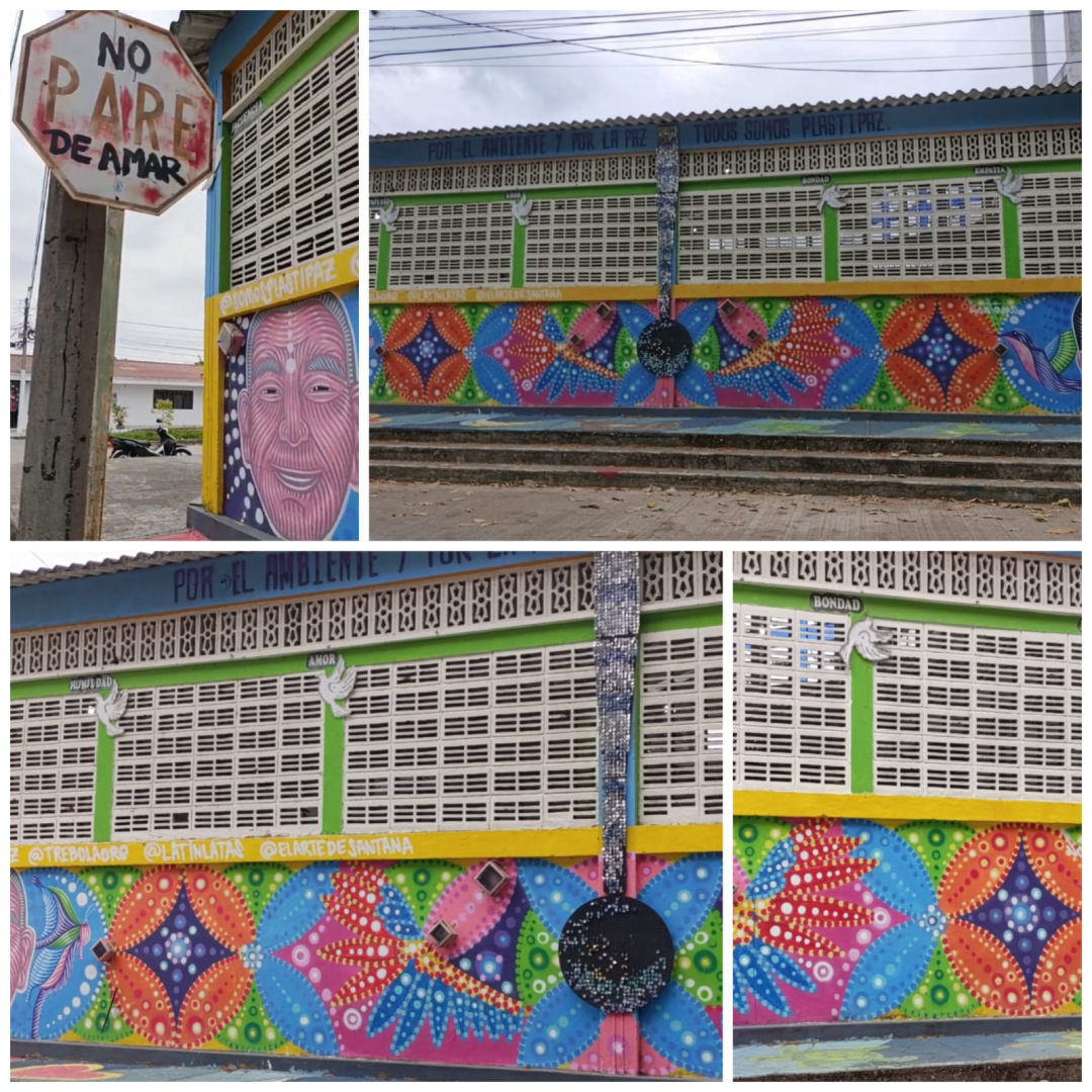 El Mural Sonoro Plastipaz es una experiencia artística y pedagógica que transforma residuos en instrumentos y paisajes sonoros que narran el cuidado del territorio y la memoria colectiva. Surge de alianzas entre comunidades, artistas (Andrea DeFrancisco, Jaime Santana y Juliana Baquero -intervención artística en el piso-, educadores liderados bajo la gestión de Trébola Organización Ecológica, que creen en el arte como herramienta de transformación social. Sus beneficios incluyen educación ambiental sensible, apropiación comunitaria, expresión cultural y construcción de paz. El Mural Sonoro convierte el residuo en voz, el ruido en mensaje y la escucha en acción colectiva.