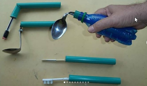 Este sistema convierte una botella en un agarre ergonómico adaptable, al que se le pueden intercambiar puntas de tubo de PVC según el accesorio que se necesite utilizar, como lápices, pinceles, cubiertos o cepillos. Su diseño sencillo, económico y versátil facilita la autonomía en diversas actividades cotidianas y creativas, ofreciendo comodidad y funcionalidad. Está pensado especialmente para personas con discapacidad motriz que requieren apoyos para mejorar la movilidad de sus manos, adultos mayores que buscan mayor seguridad y facilidad al manipular objetos, niños en proceso de aprendizaje que necesitan un agarre más estable, así como cuidadores y familias que desean recursos accesibles para fomentar la independencia y la inclusión.